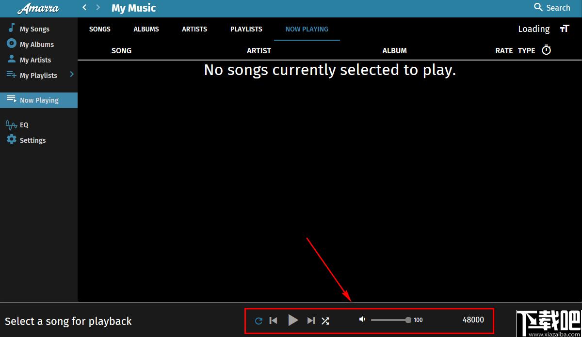 9、与其它的播放器一样,控制音乐播放的按钮在程序底部,您可以刷新歌曲,设置播放循环以及调节声音大小等等。